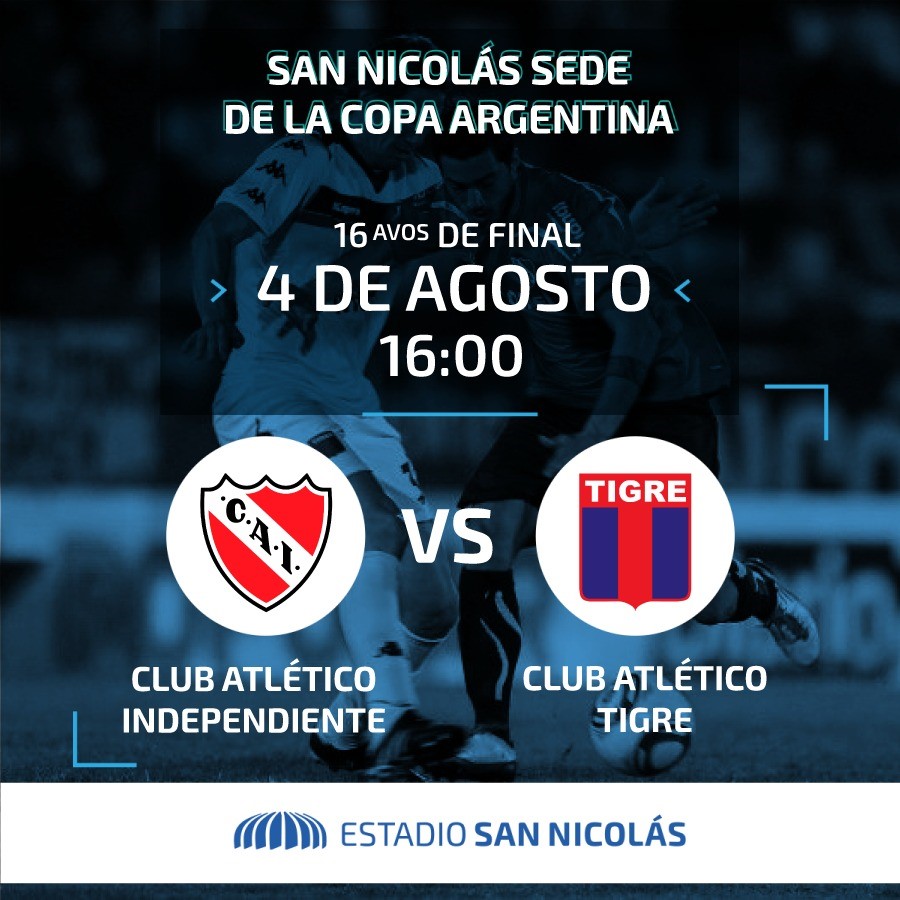 El miércoles 4 de agosto a las 16:00, Independiente de Avellaneda enfrentará a Tigre por la Copa Argentina. Dicho encuentro toma una relevancia muy importante ya que será la primera visita al Estadio San Nicolás, de uno de los considerados cinco grandes de la Argentina.