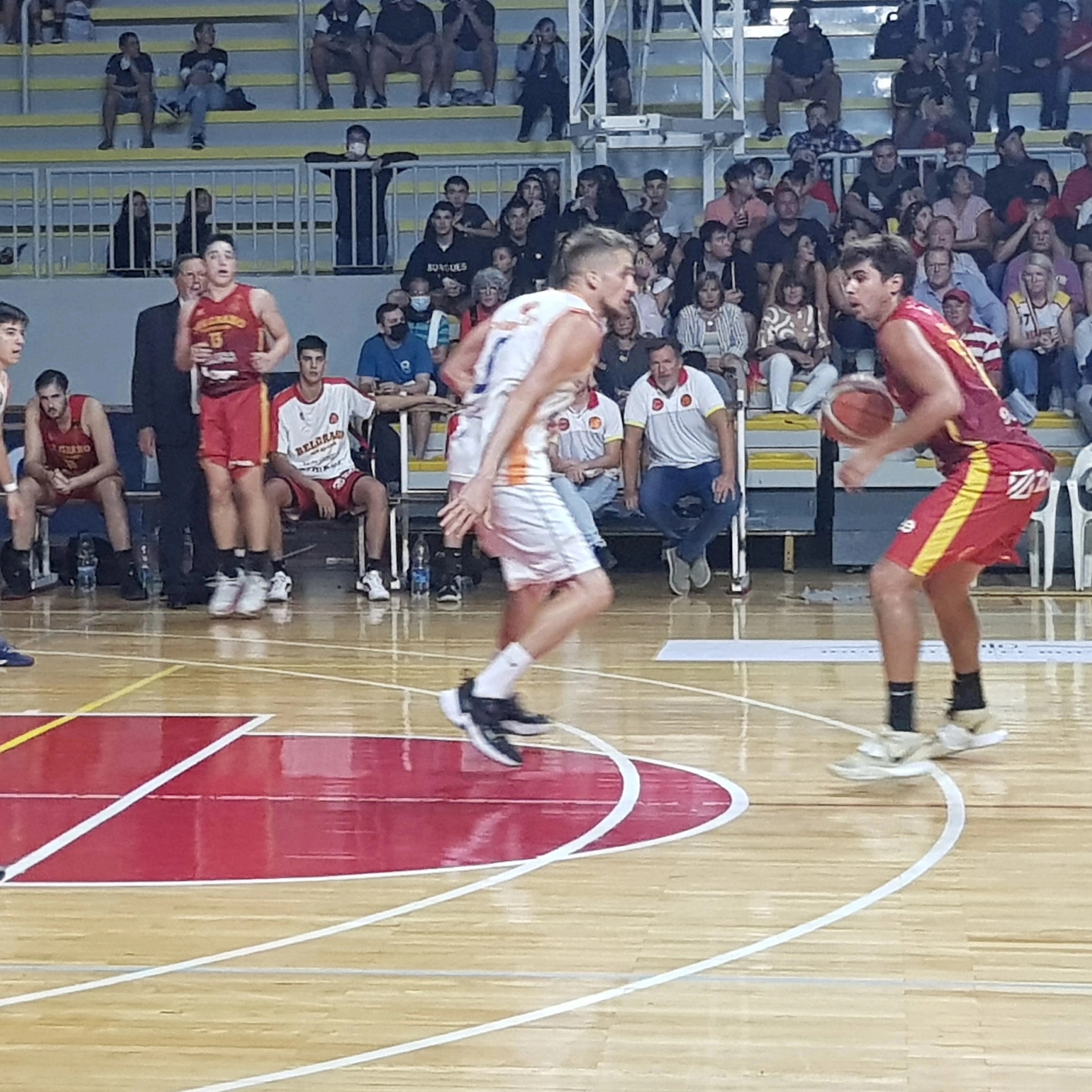 En un partido donde Belgrano arranco mas cómodo en su juego con buena producción de Eterovich y Calcaterra, Regatas no podía desarrollar lo que tenia planeado por desaciertos propios y aciertos del rival, Belgrano se llevo los primeros 10 minutos arriba por 23 a 13.