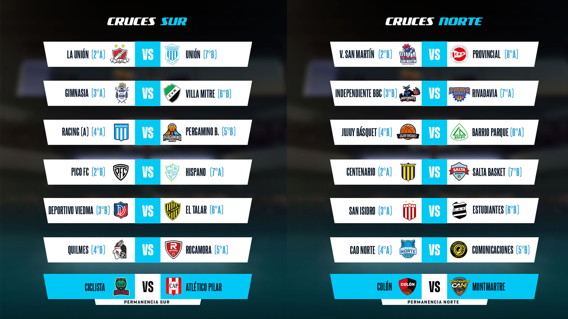 Los octavos de final de conferencia estarán compuestos por 24 equipos, se jugarán al mejor de tres en formato 1-2 y comenzarán el próximo 16 y 17 de marzo. La serie entre Gimnasia y Villa Mitre comenzará el 19 de marzo en Bahía Blanca. Todas las fechas se pueden ver en el siguiente enlace.