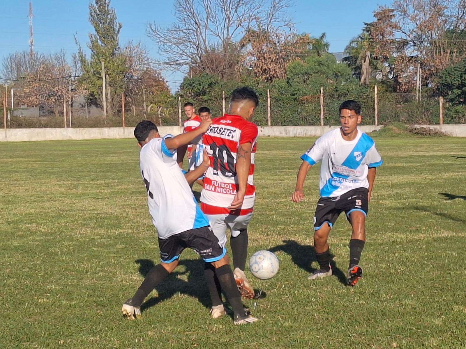 Fútbol San Nicolás: Artioli; Nicastro, Sequeira, Gutiérrez y Matías Acevedo; Enzo Verón, Ezequiel Gómez, Luna y Diego Giménez; Arce y Saucedo. DT. Rolando López