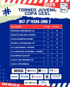 El campeonato de divisiones inferiores de la Unión de Rugby de Rosario avanza con intensidad y, tras disputarse la tercera fecha del Torneo Juvenil – Copa, los equipos de la fusión San Nicolás Rugby Club continúan siendo protagonistas, especialmente en la categoría Menores de 17 años, donde marchan como líderes con 11 puntos, seguidos de cerca por Jockey Club de Venado Tuerto con 10.